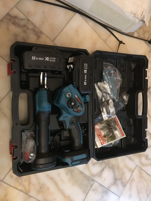 Professional Şarjlı Dal Budama Testeresi ve Budama makası 2 li set bir arada, 58vf 5ah çift akü ile işlerinizi kolaylıkla bitirin.Tek batarya ile 35 dk kesme imkanı sunuyor. 10cm ve 15 cm pala boyu ile tüm dalları kolaylıkla kesebilirsiniz.