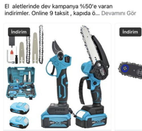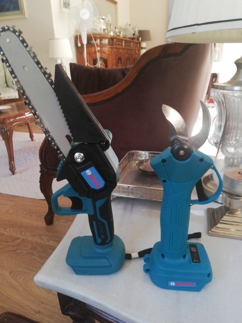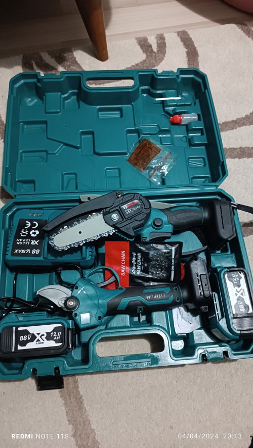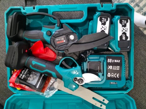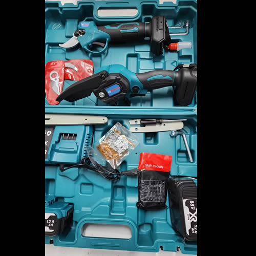 Aksesuarlar: 1 adet plastik kutu, 1 adet dal budama testeresi , 1 adet dal makası, 1 adet pil şarj cihazı, 2 adet Li-ion Batarya , 2 adet zincir , 2 adet pala, Ek Parçalar