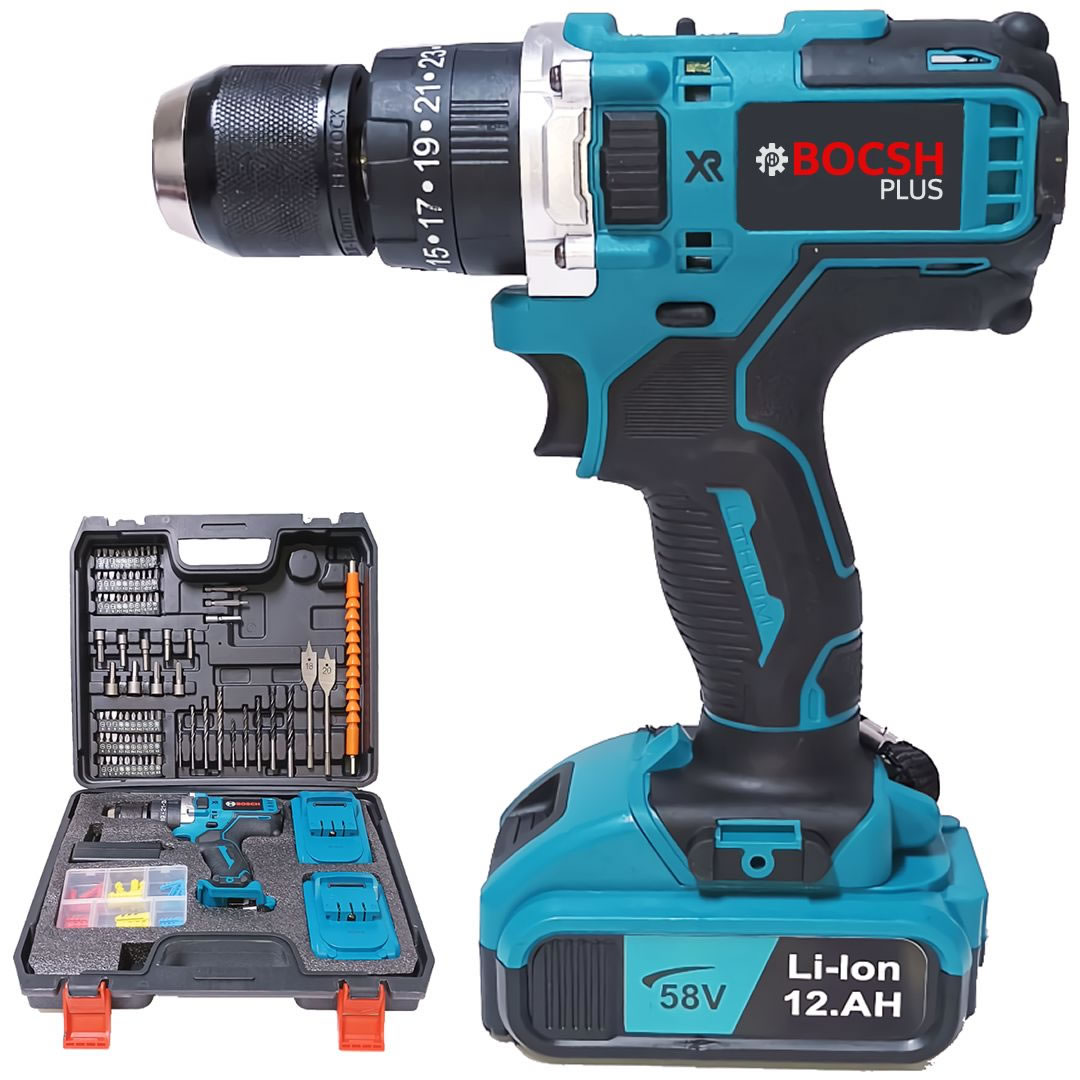 BoshPower EE339 Yeni Xr Çift Batarya 58vf 12ah Şarjlı Matkap Seti (Mavi)