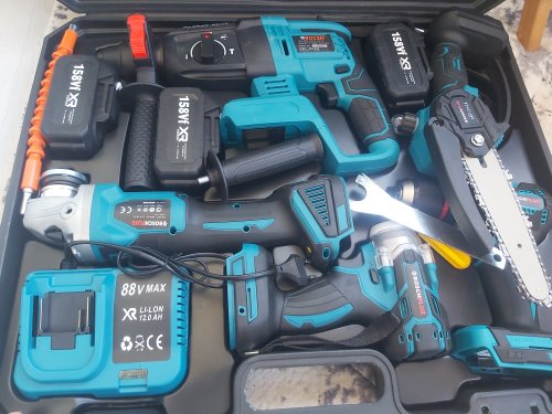 Profesyoneller için geliştirilmiş 5 ürün bir arada ; 125mm Avuç Taşlama, Sds Plus Kırıcı Delici Hilti, Somun Sıkma Sökme, Vidalama Matkap, otomatik yağlamalı 15cm pala Dal budama testeresi