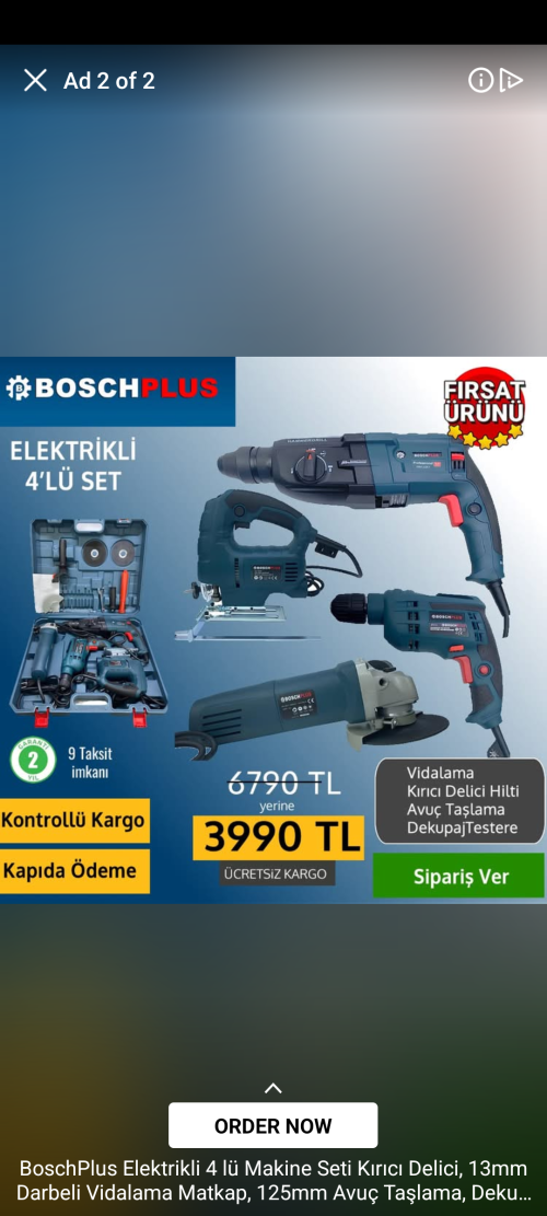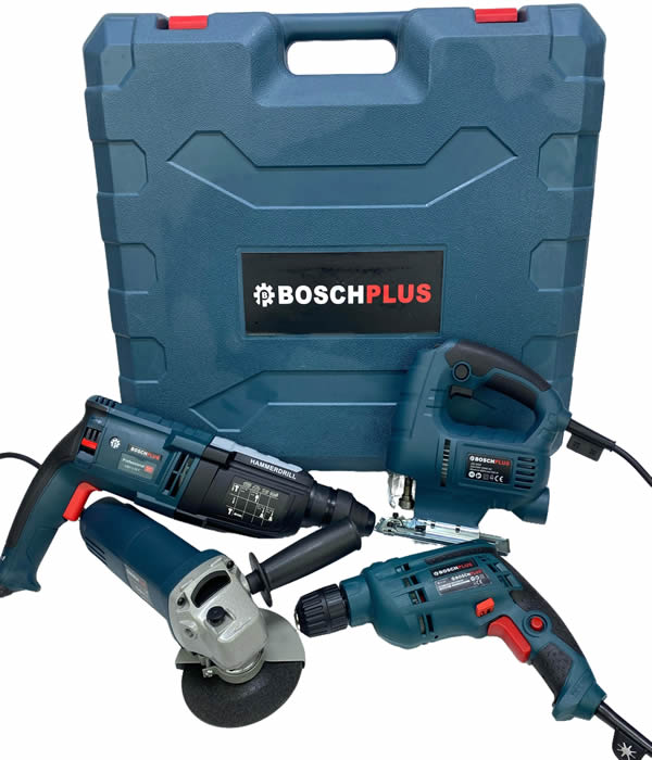 Boschplus elektrikli dörtlü set vidalama , kırıcı delici hilti, dekupaj testere ve avuç taşlama çantası ile birlikte