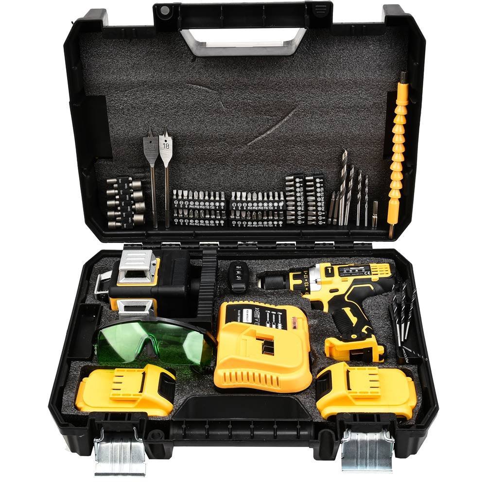 Tür: 12 köşe fonksiyonlu lazer terazi ve vidalama matkap set