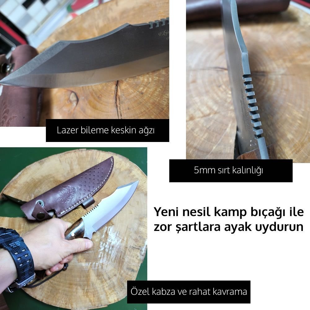 Profesyonel Özel el yapım tamamen yerli üretim kamp bıçağı deri kılıflı ve paslanmaz çelikten üretilmiştir.