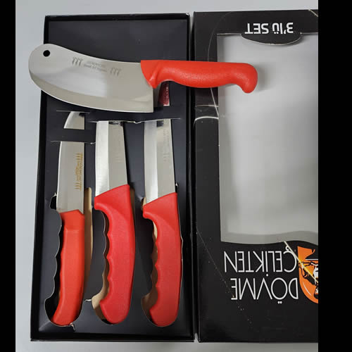 Parçalar : 1 ürün kutusu, 2 Adet Kasap Bıçağı ,1 Adet Sebze Bıçağı, 1 Adet Börek Bıçağı