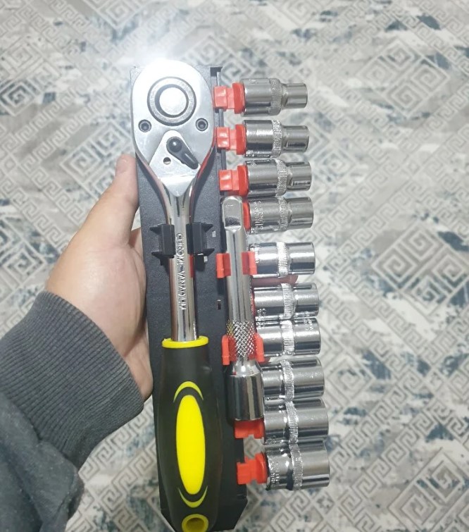12 PARÇA LOKMA SETİ KROM VE KALİTELİ: PROFESYONEL CIRCIRLI KOL (SAĞ-SOL DÖNÜŞ) LOKMALARIN GİRMEDİĞİ YERLER İÇİN 15 CM LİK UZATMASI 8,10,12,13,14,15,17,19,22,24 mm lokmalar