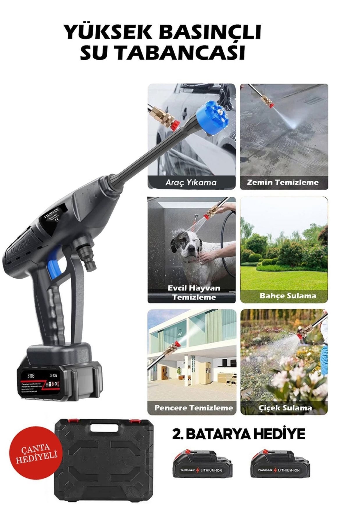 Thomax EEA331 Şarjlı Ve Yüksek Basınçlı Oto Yıkama Makinesi ve Sulama Tabancası