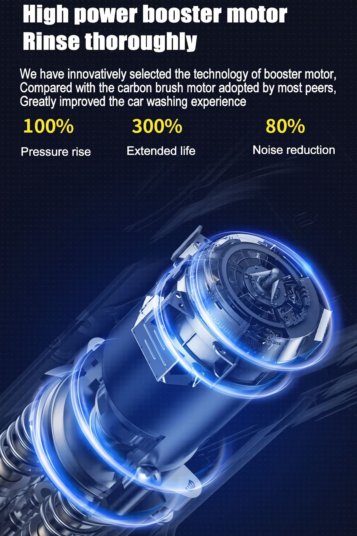 Kolayca taşınabilir ve şık bir çanta hediye edilen bu araç yıkama su tabancası, her yıkamada %50 su tasarrufu sağlayarak çevreye de katkıda bulunuyor. Güçlü 300W motor gücüyle üreten bu cihaz, tüm kirleri etkili bir şekilde yok eder. Motor hızı dakikada 20.000 rpm ile yüksek performans sunar ve geniş açı seçenekleri ile her yıkama ihtiyacınıza uyum sağlar.