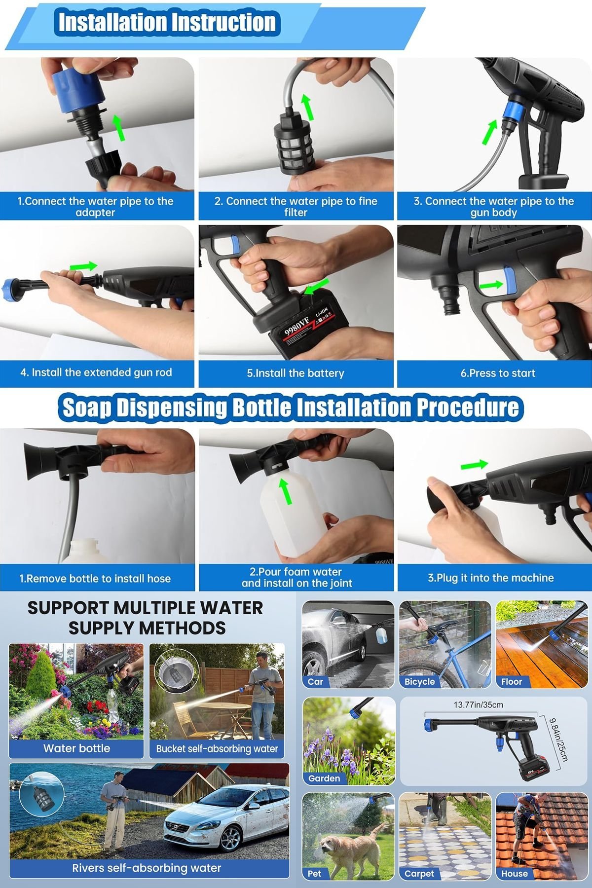 - Çok fonksiyonlu yüksek basınçlı temizlik, araba yıkama için çok uygun, bahçe sulama, tarım sulama ve günlük temizlik